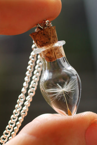 Folklore says that blowing the feathery little seeds off a dandelion will carry your thoughts and dreams to your loved one or will grant you a wish! So here is your very own wish and a whisper, encased in a tiny little glass vial for safe keeping, until the time you might need it. Traditionally dandelions bring good luck and...
